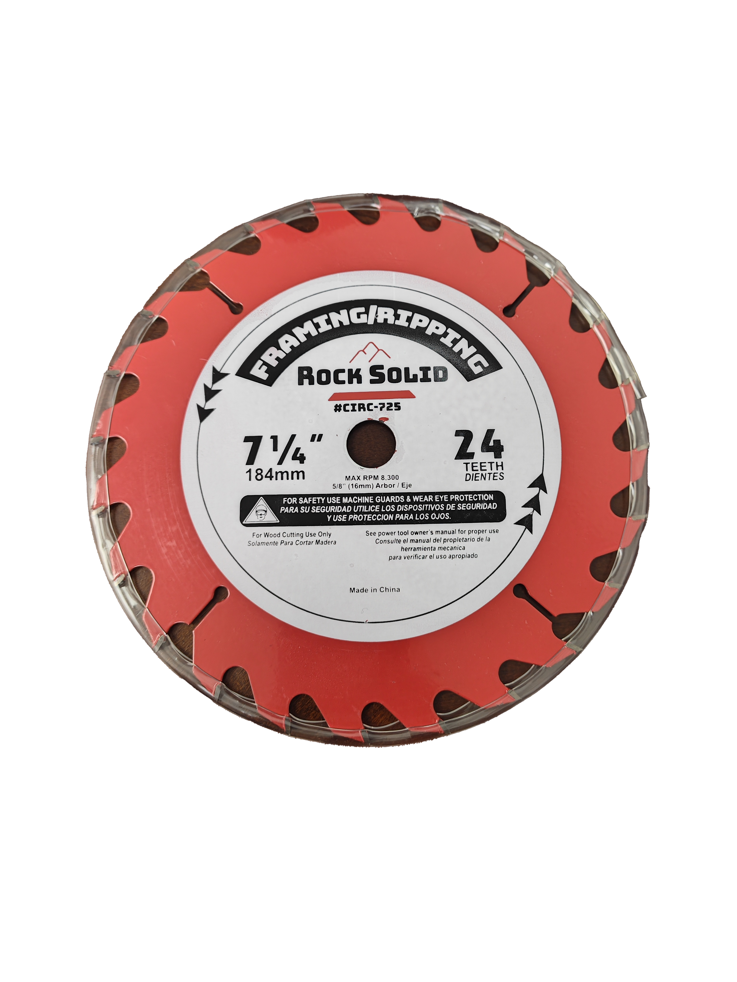 7¼" diameter carbide blade. 5/8" arbor with 8300 max. RPM. High quality carbide teeth. Excellent for framing and ripping use. 25 blades in a box.